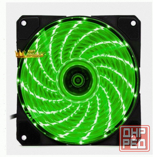 корпус вентилятора прозрачный с зеленой подсветкой.