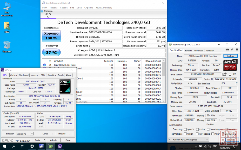 ноутбук абсолютно рабочий, в своё время полетел жёсткий диск и он был заменён на 240гб ssd, наработка ssd мелкая на фото, так как использовался для запуска старых игрушек которые не работают адекватно на современном компьютере. так-же дважды менялась память сперва один слот заменили на 2гб, потом и второй на 2гб. стоит windows 10 ltsc с последними обновлениями, то есть можно сразу брать и пользоваться. способен проигрывать онлайн видео в 720р если использовать оперу и не в полном экране но лучше всего ноут раскроется в качестве ретро устройства на win7 или рабочего ноута на linux. все порты рабочие, дисковод тоже абсолютно рабочий и отлично читает диски. есть царапины на крышке матрицы, но думаю это можно заполировать.
