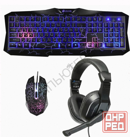 игровой комплект oklick hs-hkm100g черный 2.2м мониторы оголовье hs-hkm100g