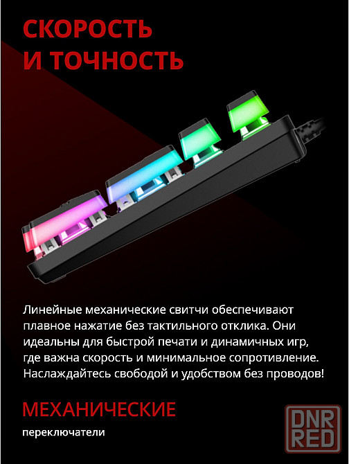 механическая клавиатура с негромкими красными свичами.широкие откидные ножки. резиновые накладки. клавиатура типа скелетон с матовыми подсвечивающимися кейкапами rgb подсветка. регулируемая подсветка. компактное расположение клавиш. металлическая верхняя панель