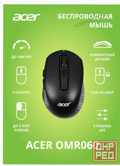 мышь acer omr060, черный zl. mceee.00c