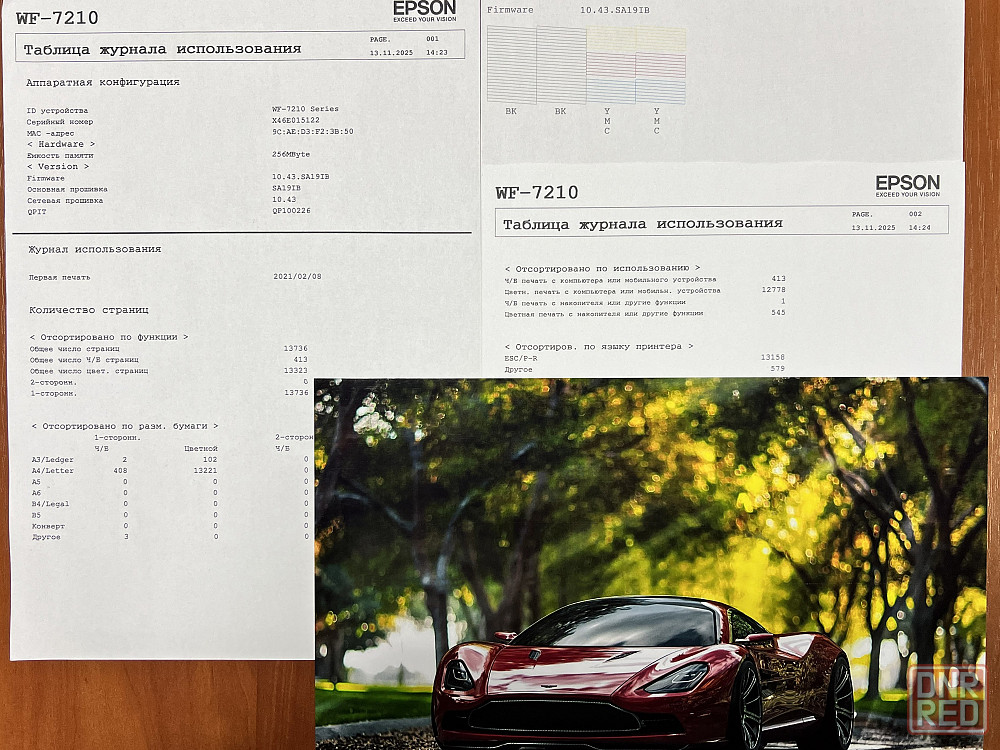 продам надёжный, профессиональный принтер epson wf-7210dtw, формат а3+ полный комплект с оригинальной упаковкой в отличном техническом состоянии. систему снпч устанавливали в сервисном центре магазина при покупке принтера. напечатанное число страниц: 13736, тест дюз 100%, без ремонтов. epson wf-7210dtw – это одна из самых надёжных моделей компании. принтер печатает быстро и качественно. на последнем фото – таблица журнала использования принтера, тест дюз и напечатанная принтером фотография. в наличии два принтера.