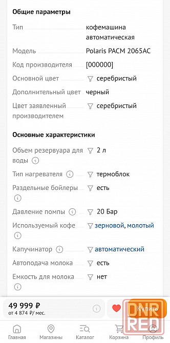 продам кофемашину автоматическая polaris pacm 2065ac серебристый