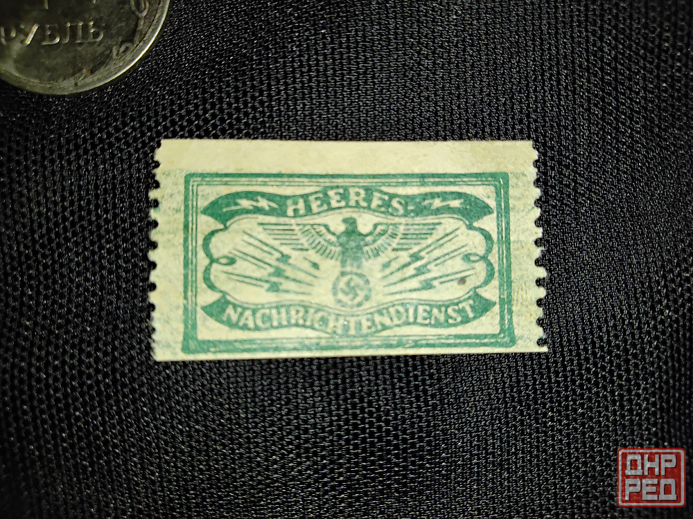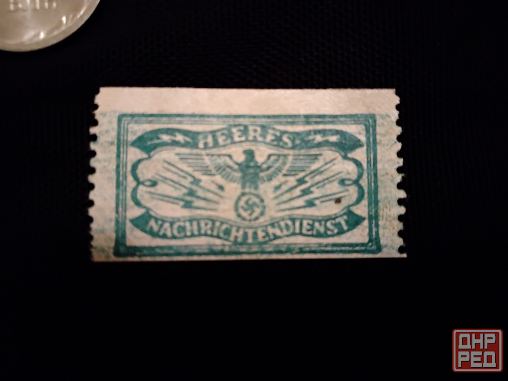 марка разведки сухопутных войск вермахта для опечатывания корреспонденции . образца 1939-1945 годов . на обратной стороне карандашом написана дата : " 2.10.43 " . размер марки : 33 мм х 19 мм . цена = 1.000 рублей . днр . город макеевка . район черемушки "даки" .