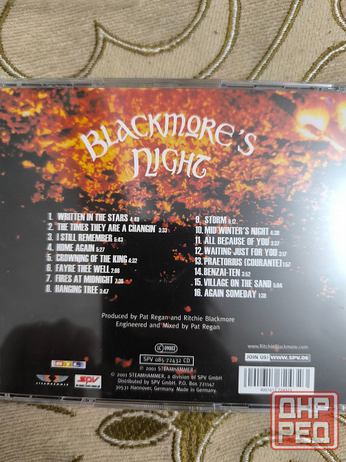 blackmore's night – fires at midnight 2001; steamhammer – spv 085-72432 cd germany 1st press.