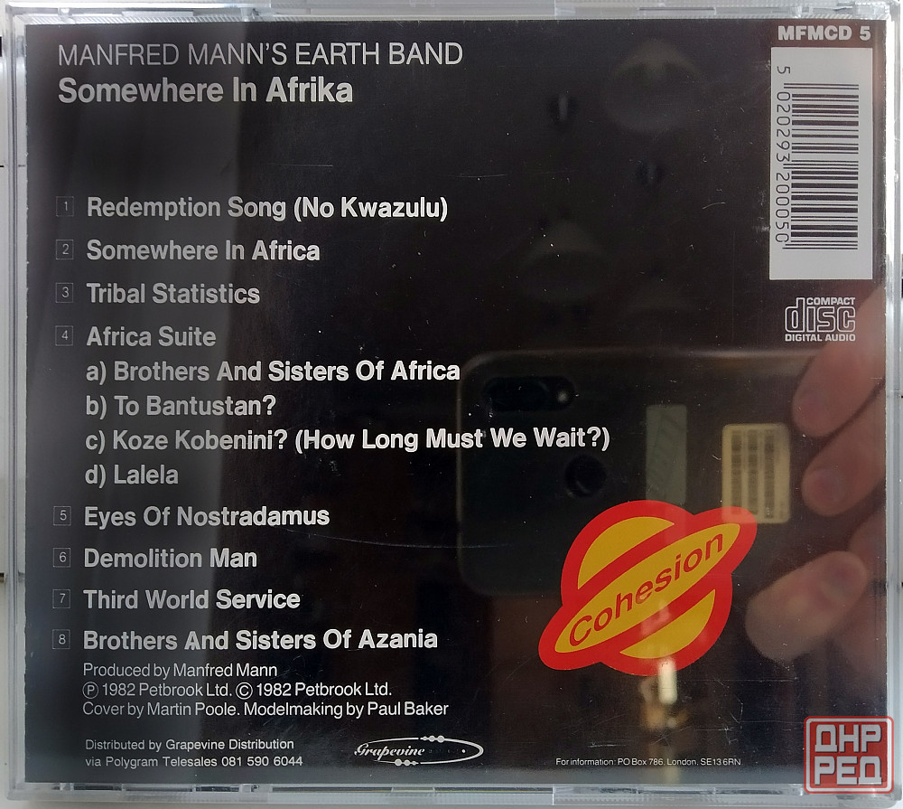manfred mann earth band 1982 somewhere in africa: производство uk, раннее издание 1989 года без ifpi, буклет 4 страницы, состояние диска и полиграфии отличное, стоимость 1500 р.