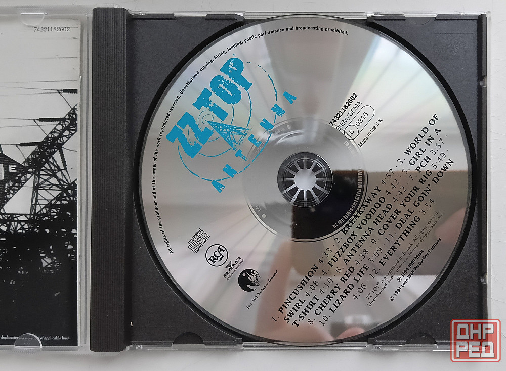 zz top 1994 antenna: издание англия uk, рельефный ifpi есть на фото матрицы выше центрального отверстия, буклет 12 страницы, состояние диска и полиграфии: очень хорошее, футляр новый. стоимость 1000 р.