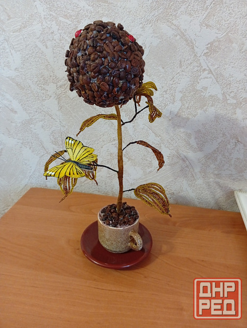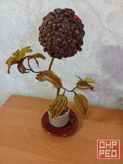 Кофейный топиарий из бисера и кофейных зерен