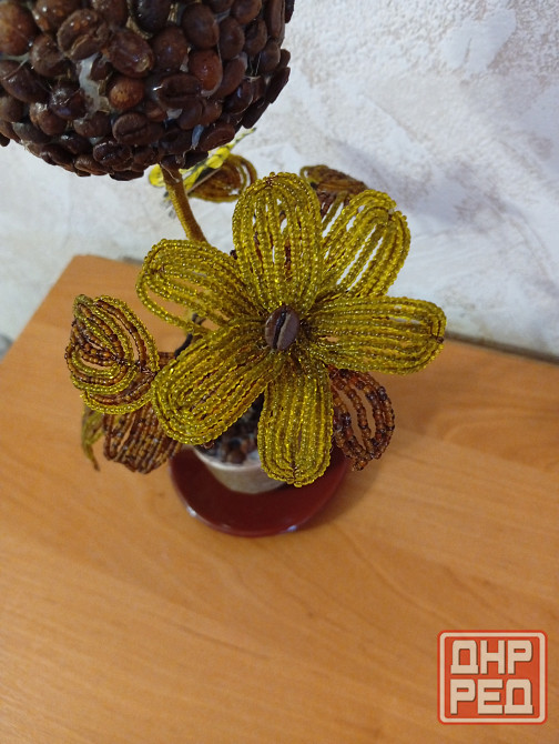 кофейный топиарий из бисера и кофейных зерен