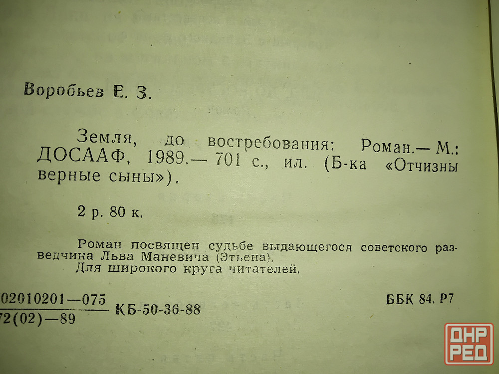" земля , до востребования " . знаменитый роман о знаменитом советском разведчике льве маневиче . автор - писатель евгений воробьев . цена = 50 рублей . днр . город макеевка . район черемушки "даки" .