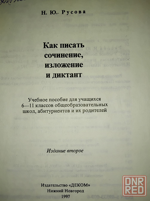 " как писать сочинение , изложение и диктант " . учебное пособие для учащихся 6-11 классов общеобразовательных школ , абитуриентов и их родителей . цена = 500 рублей . днр . город макеевка . район черемушки "даки" .