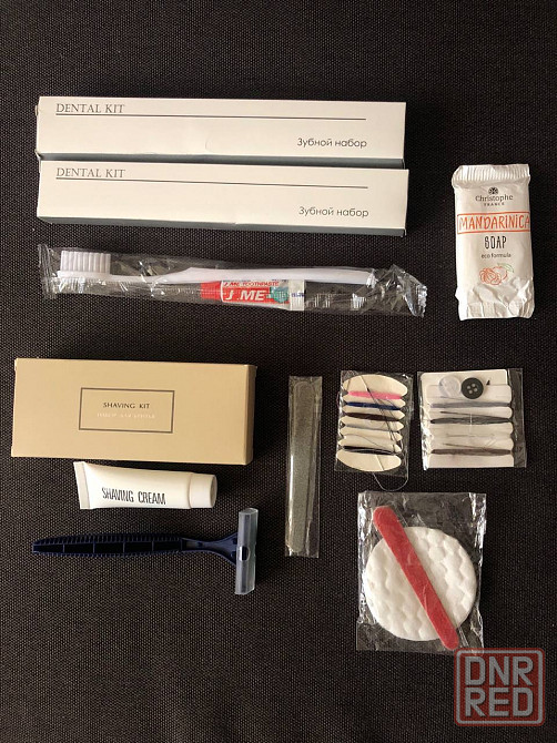 зубной набор- 2 шт , набор для бритья, мыло, набор ниток , салфетки, пилочка