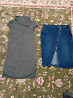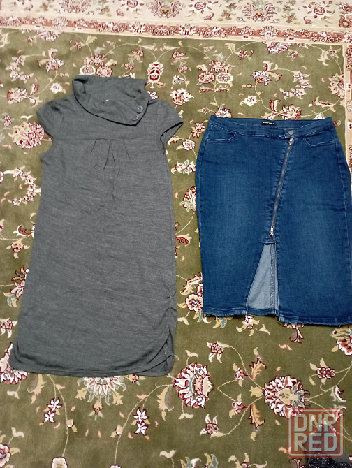 юбка джинсовая, полу обхват талии 40 см, длина 65 см, платье 48 размер длина 85 см