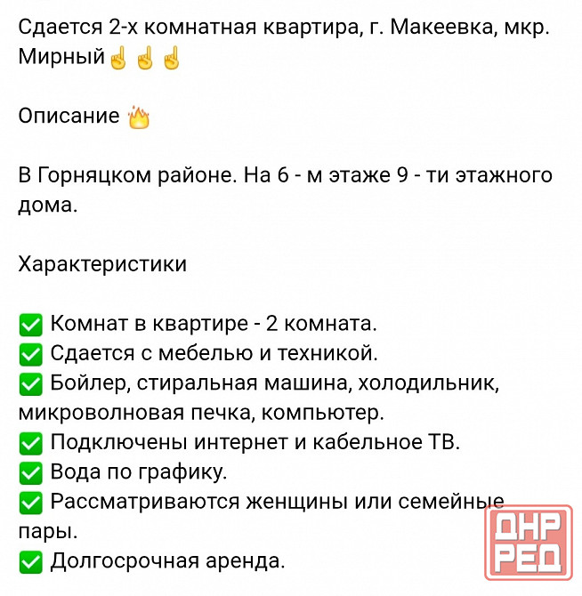 Сдаю 2к.кв. м-н Мирный( Макеевка) ₽ 30 000