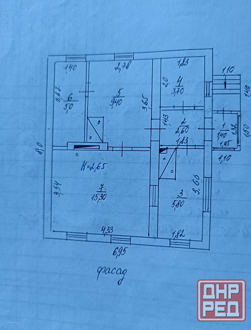 3 жилые комнаты, кухня,кладовая, тамбур.