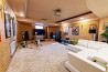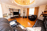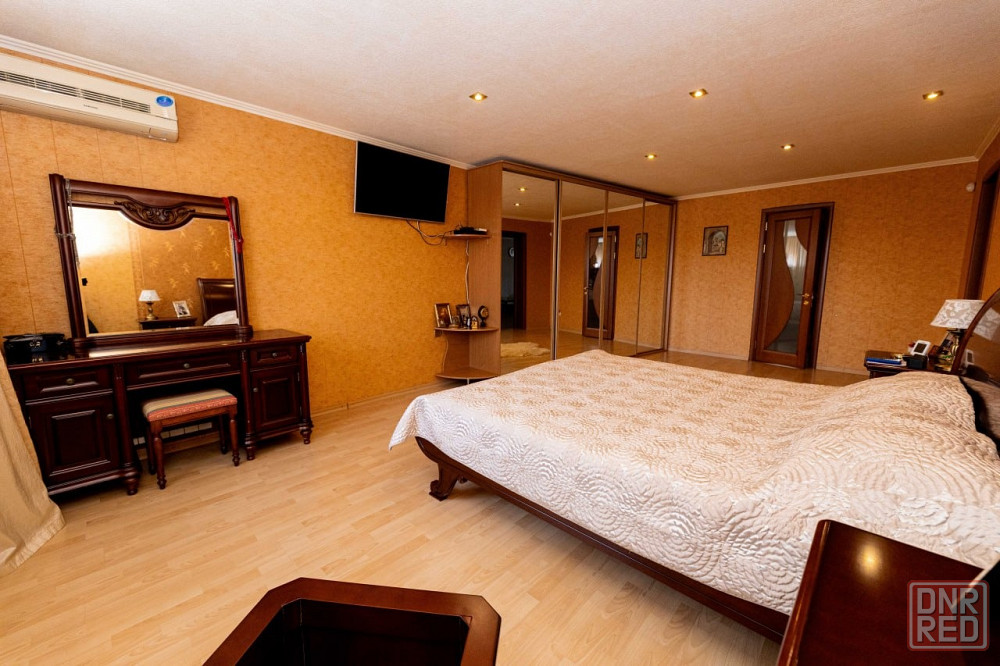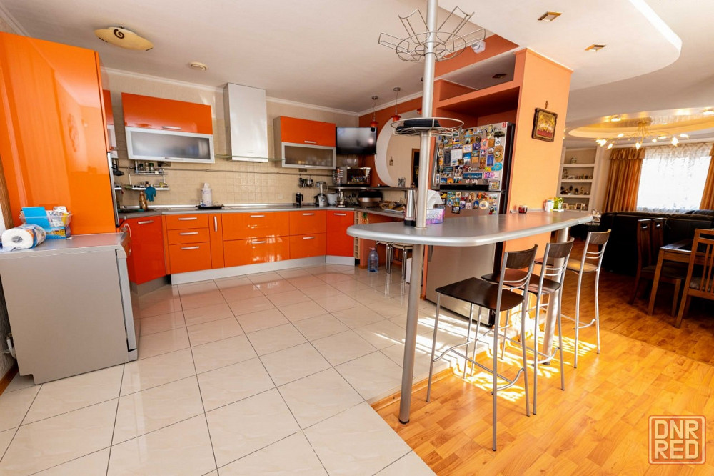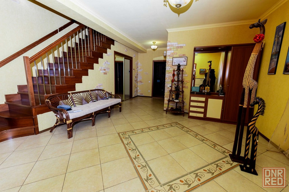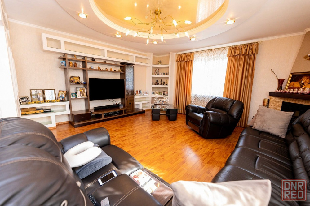 дом трехуровневый. на первом – прихожая, кинотеатр с баром, гараж, газовая котельная и постирочная. на втором – гостиная с кухней, кабинет и детская. на третьем – большой холл и и две спальни. на каждом этаже – балконы и санузлы. отделка внутри дома выполнена только из дорогих материалов мировых брендов. это касается и мебели с техникой.