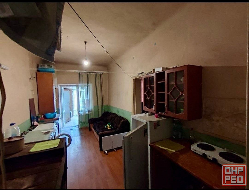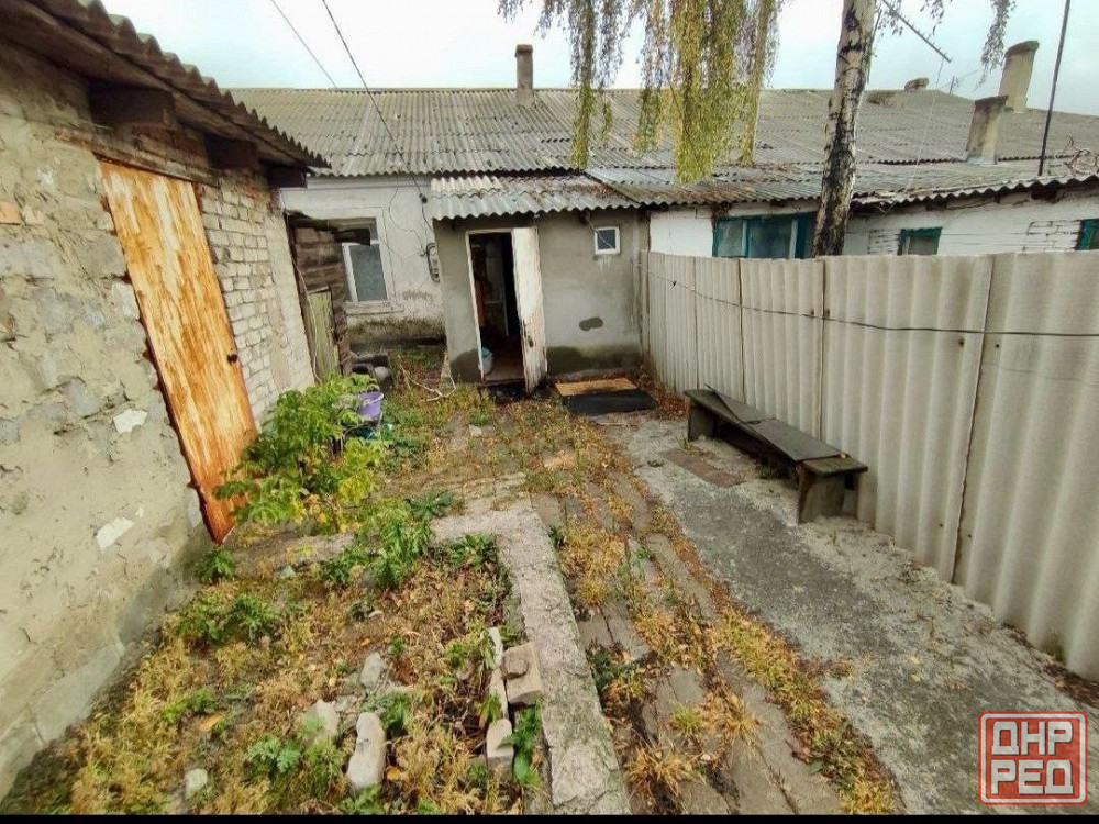 продажа дома квартиры на земле в макеевке п.4/13 советский район, состоит из коридора, зала и спальни, санузел в доме. отопление печное. участок 2 сотки, канализация сливная яма.