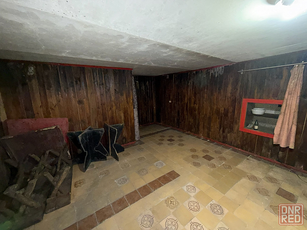 2 этаж. комната отдыха,на полу плитка,стены в дереве. имеется буржуйка и еще одна пристроенная комната.