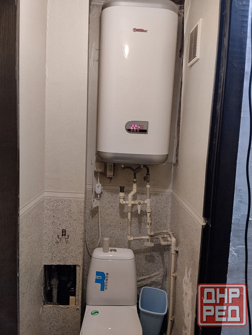 в ванной кафель, бойлер.