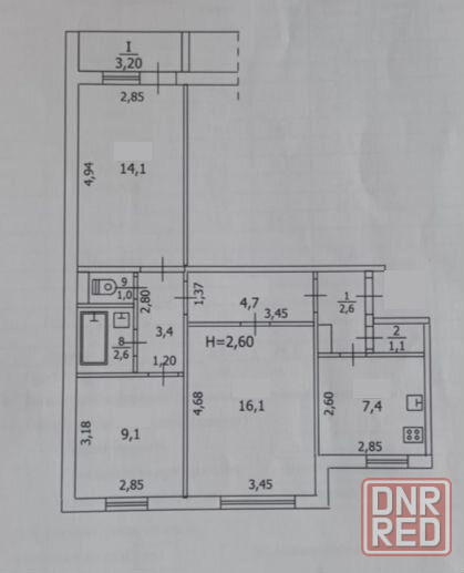Общая площадь: 63.7 м2