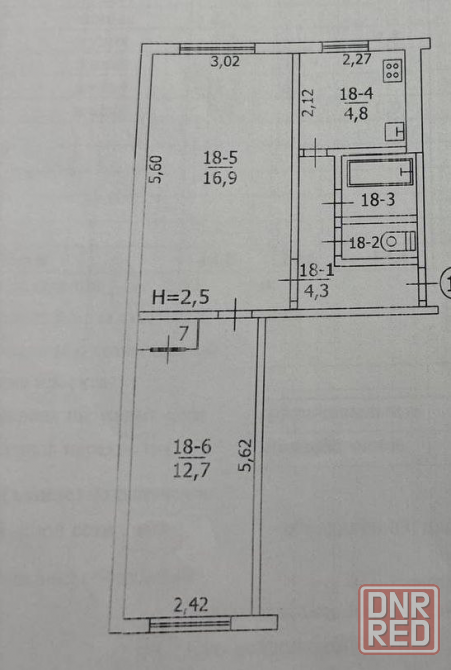 Площадь кухни: 5 м2