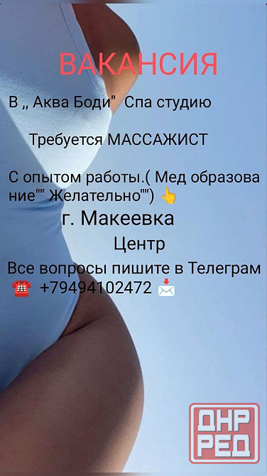 в центр города макеевка в спа студию требуется массажист с опытом работы. +79494102..📲, . з/п высокая