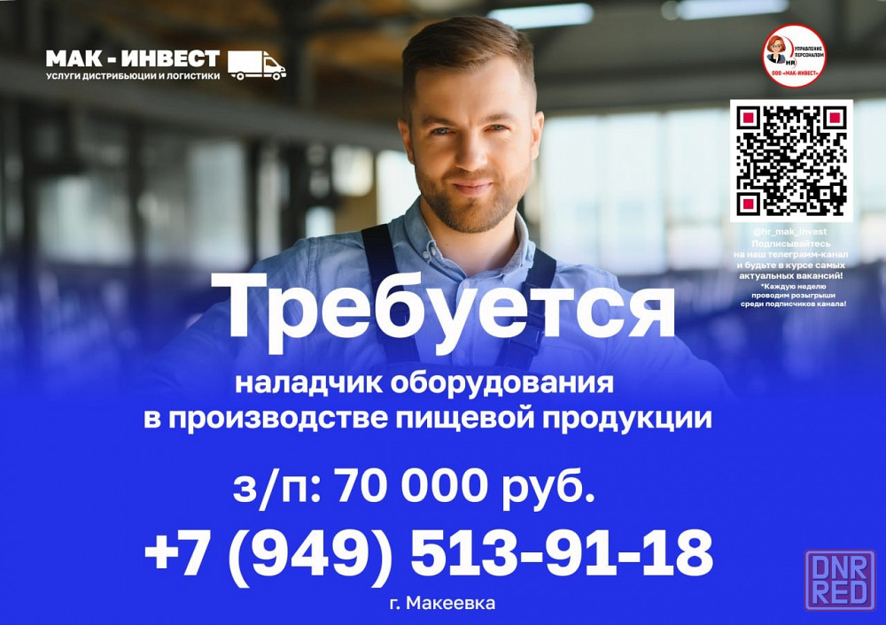 наладчик оборудования в производстве пищевой продукции!