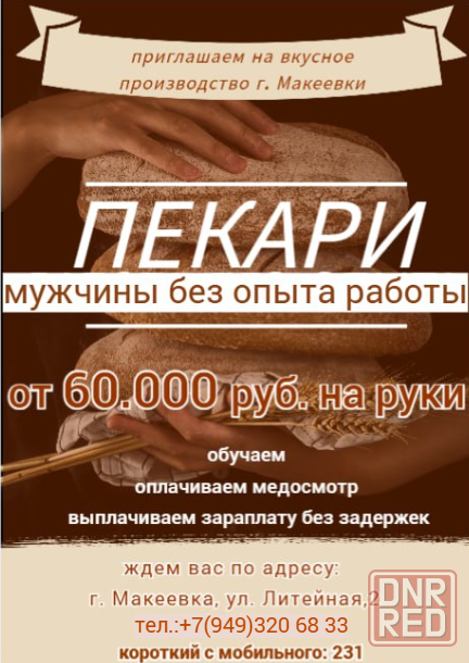 хлебозаводу в г. макеевка требуется кондитер-пекарь, желательно мужчина: