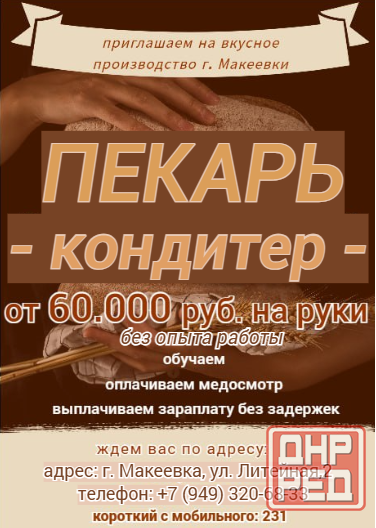 хлебозаводу в г. макеевка требуется кондитер-пекарь, желательно мужчина: