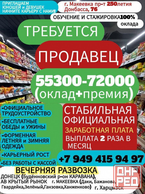 в супермаркет приглашаем продавца парней девушек без кассы! г. макеевка пр-т 250-летия донбасса, 76 ост. западная без опыта с желанием работать и зарабатывать.