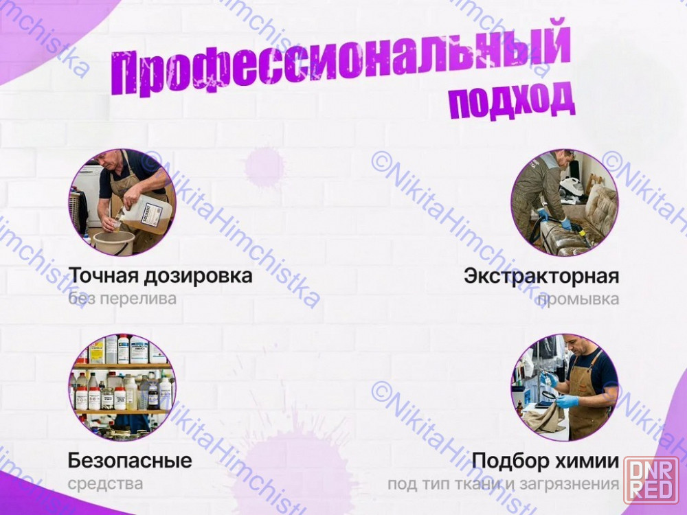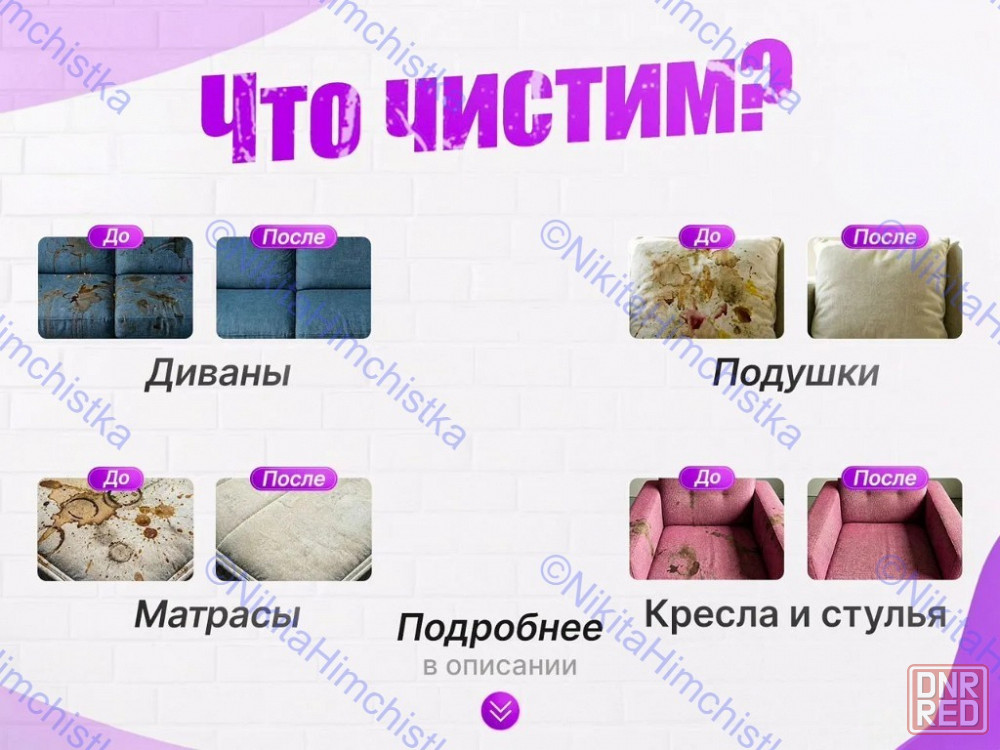 ✅ современные профессиональные оборудование и средства, которые глубоко очищает ткань и наполнители, удаляет пыль, грязь, различные пятна и даже невидимые аллергены.