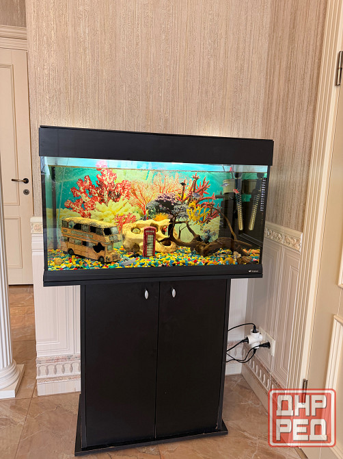 продаётся полный комплект аквариума на 150 литров. в набор входит тумба, фильтр, освещение, градусник, компрессор, декоративные фигурки, корм и аксессуары для чистки. аквариум в целости, тумба имеет незначительное вздутие в нижней части из-за попадания воды. окончательная цена — 35 000 рублей. только самовывоз, возможна предварительная договорённость для подготовки.