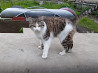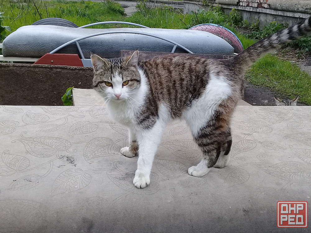 мама-кошка дворовая, искусно ловит мышей