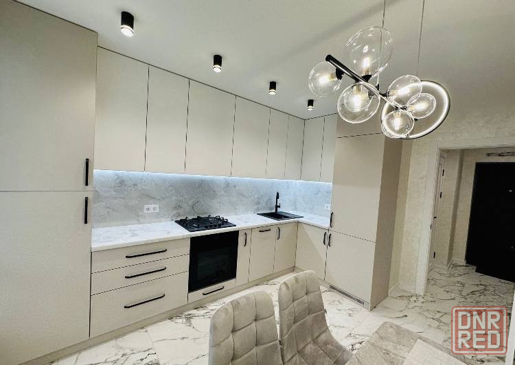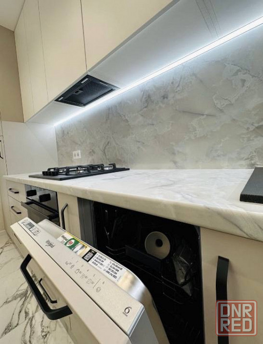 •кухня укомплектована всей необходимой встроенной техникой: газовая поверхность, посудомоечная машина, духовой шкаф и микроволновка