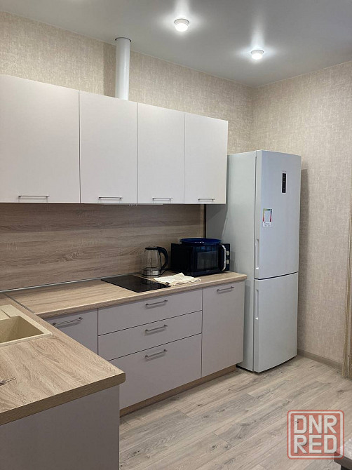 квартира оборудована всем необходимым для жизни: электро плита, холодильник, стиральная машина, телевизор, интернет, в комнатах — двуспальная кровать, есть шкафы для хранения, кровать и рабочее место.