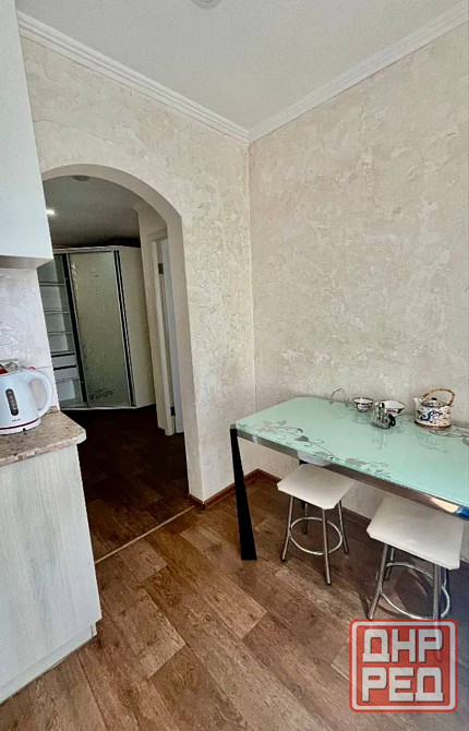 в квартире имеется следующая мебель и техника: кухонный гарнитур, холодильник, плита с духовкой, обеденный стол со стульями, электрический чайник, посуда, диван-кровать, кровать, телевизор, шкафы и прочее. санузел смежный.