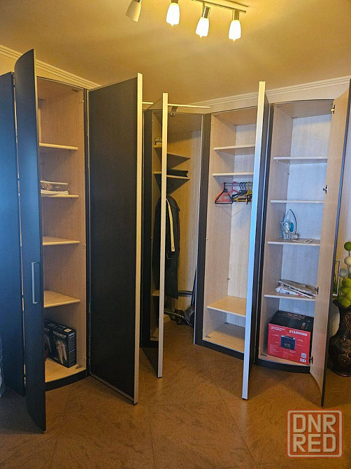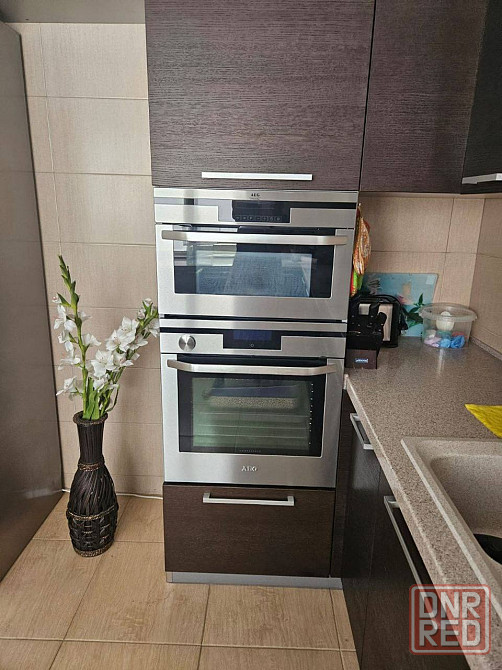 внутри всё уже готово: нормальная кухня с плитой, духовым шкафом и микроволновкой, холодильник, стиральная машина в санузле, в комнатах диван, кровать двуспальная, шкафы и столы.