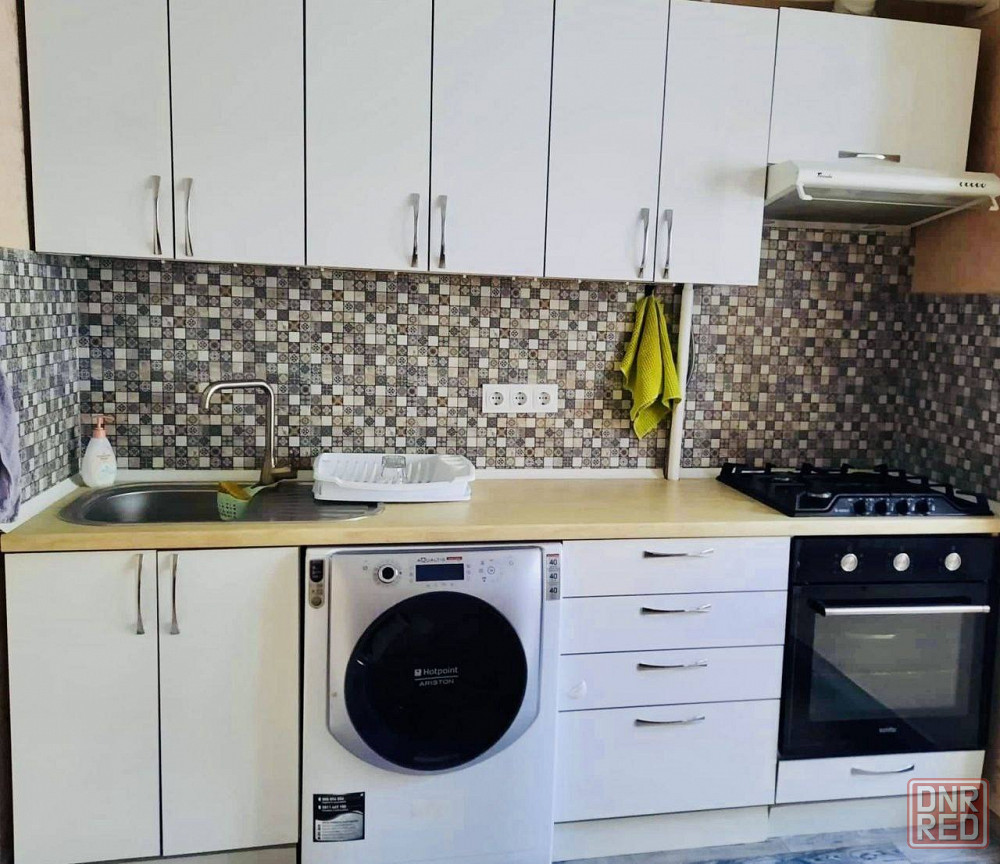 внутри всё готово к проживанию: нормальная кухня с плитой и холодильником, стиральная машина в санузле, в комнатах диваны, шкаф и рабочая зона.