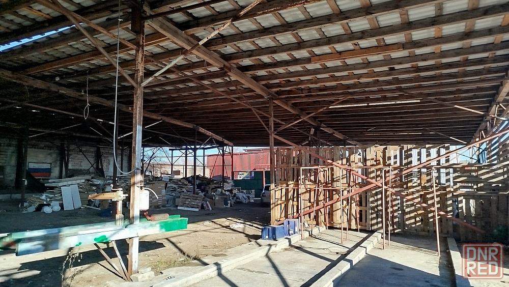 s 1000м2 навес возможность использования под различное целевое назначение стройматериалы, лес, прилегающая земельная территория 5 соток, территория ограждена, охраняется.