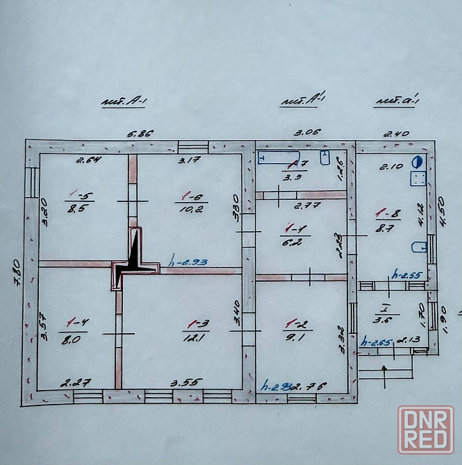 9,1 м² + 12,1 м² + 8,0 м² + 8,5 м² + 10,2 м²