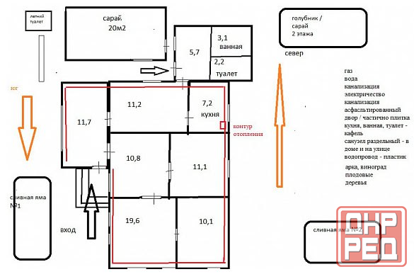 две сливные ямы раздельные, наружный туалет, душ. большие хозяйственные постройки под неотапливаемый сарай.