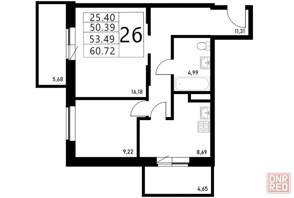 ✅ общая площадь: 53.49м²