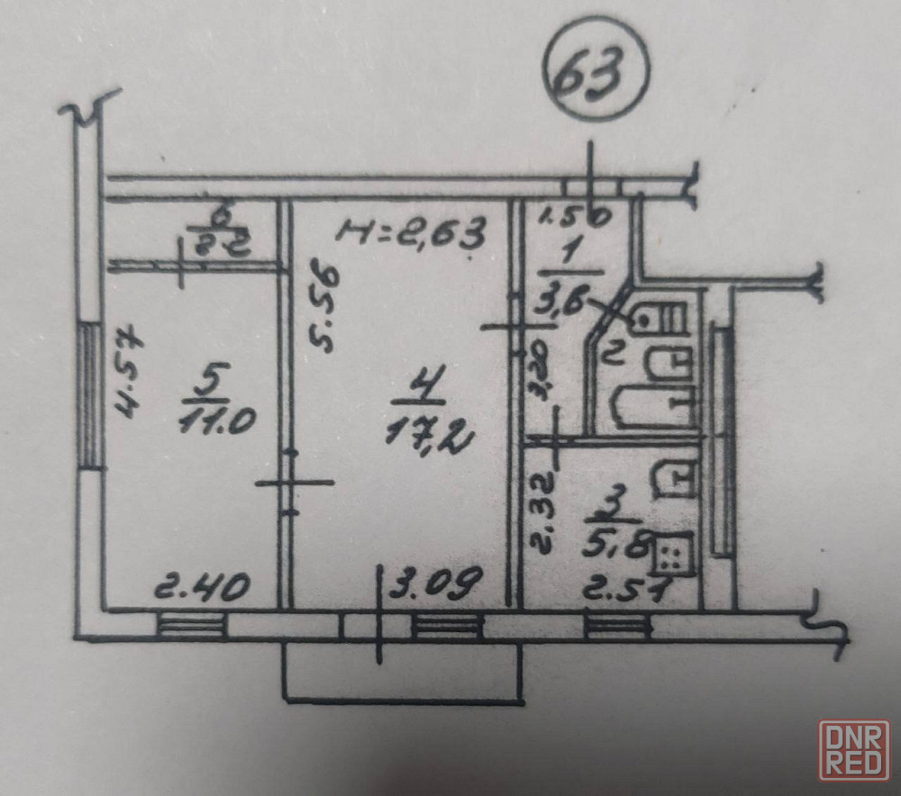 высота потолков 2,63. пластиковые окна ,новая система отопления .требуется капитальный ремонт .