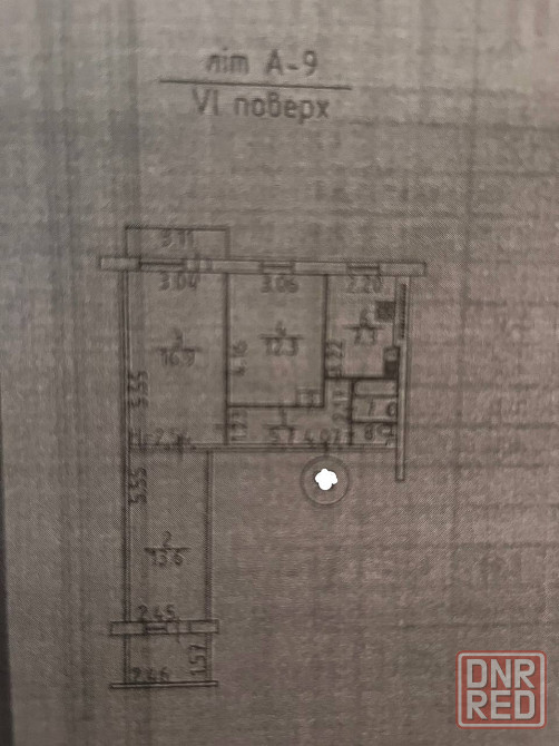 жилая — 42,8 кв. м16,9+13,6+12,3