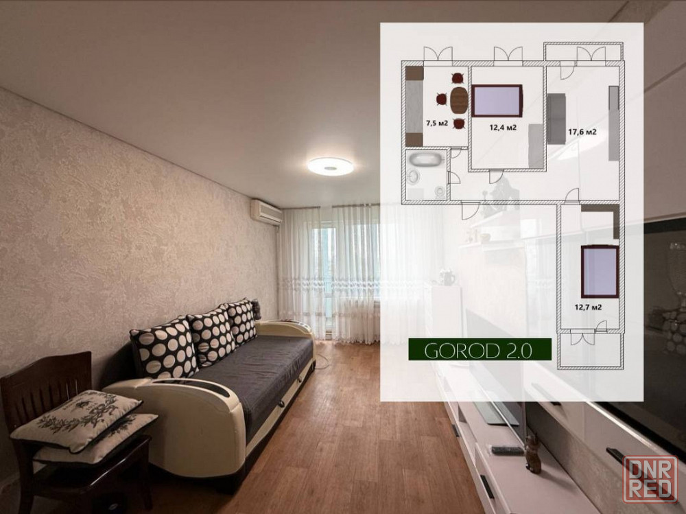 планировка - 2 просторных изолированных комнаты и гостиная