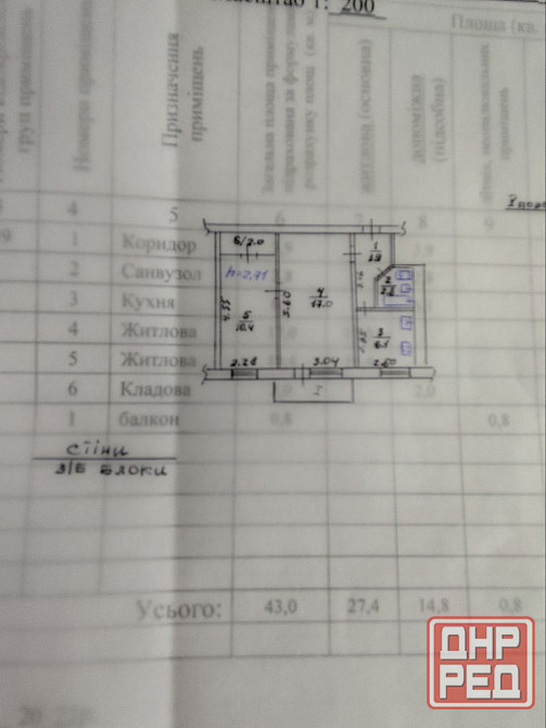 Общая площадь: 43 м2