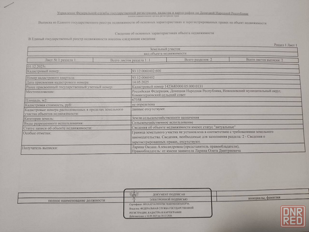 Продам пай 6,74га Коминтерново(Пикузы)