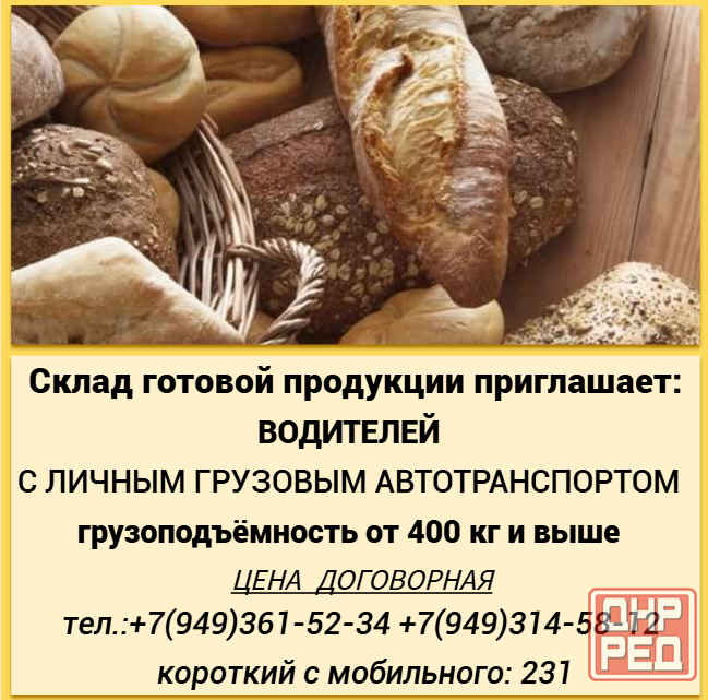 склад готовой продукции приглашает водителей с личным грузовым автотранспортом от 400 кг.