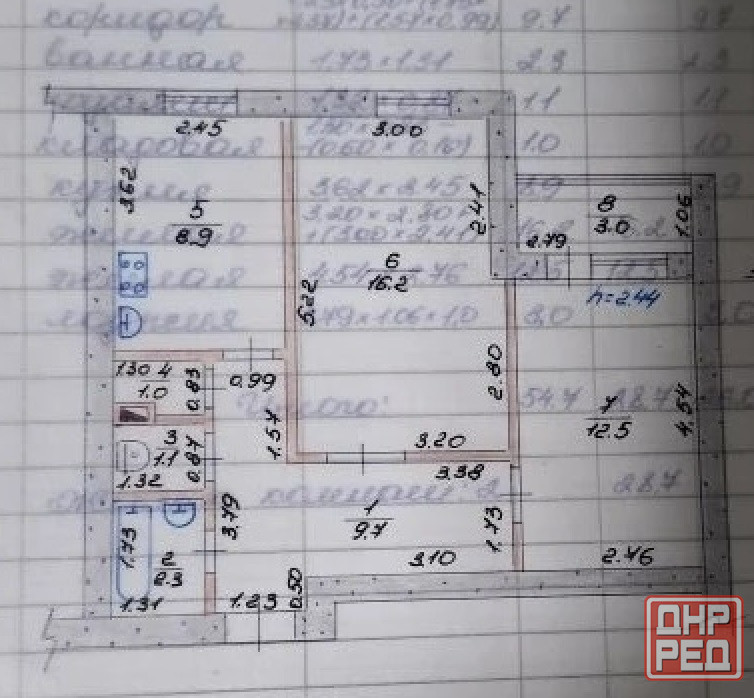 общая площадь 55 кв.м., кухня 9 кв.м., зал 16 кв.м., спальня 13 кв.м., прихожая 10 кв.м., санузел раздельный 4 кв.м., есть кладовая 1 кв.м., лоджия 3 кв.м.