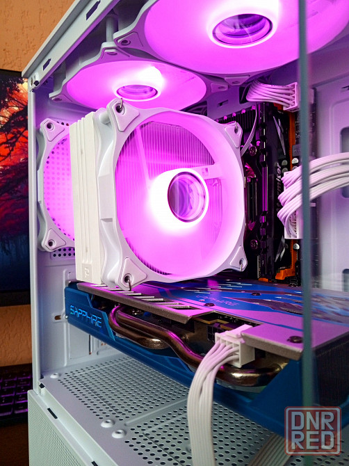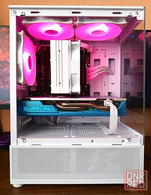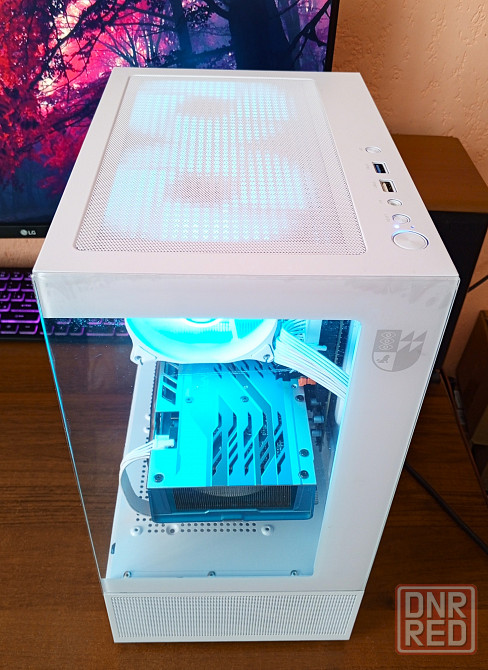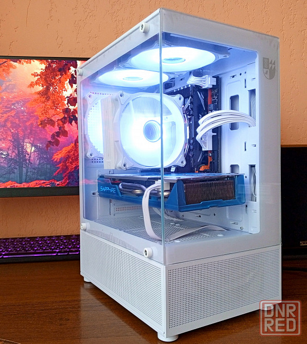 -корпус боковая и фронтальная панель из закалённого стекла + 3шт 120мм argb вентилятора цвет и режим подсветки можно менять.